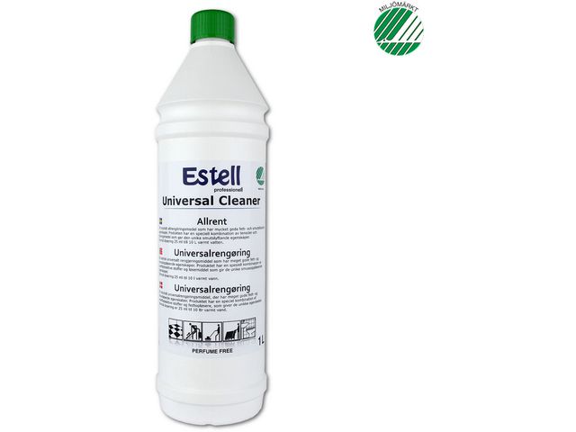 Allrengöringsmedel har mycket goda fett- och smutslösande egenskaper Estell allrent kan användas på alla slags hårda vattentåliga ytor som plastgolv, linoleum, målade ytor, kakel, sanitetsgods och rostfritt. Till oljade trägolv, stengolv och gummi är Estell såpa ett bättre alternativ. - pH-värde: 9,8 - Oparfymerad - Dosering: Normal rengöring: 25 ml till 10 liter vatten. Grovrengöring: 50 ml till 10 liter vatten. - Utseende: Klar vätska