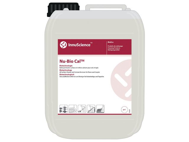 Nu-Bio CalTM är en högeffektiv koncentrerad bioteknologisk vinterrengörare speciellt utformad för den saltbeläggning som bildas på golv och textilmattor. Används i trapphus, skolor, köpcentrum, butiker, kontor, hotell mm Nu-Bio Cal är en koncentrerad bioteknisk kalkborttagning speciellt framtagen för att rengöra och ta bort rester från avisningsmedel på golv och mattor. - pH- värde: 7 - Parfymerad, citron - Dosering: 1:125:1:200 - Utseende: Transparant