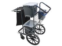 Fastighetsvagn som är extremt robust och tålig, anpassad för utomhusbruk. 400 mm bakhjul samt 150 mm framhjul. Vagnen är välbalanserad och lättmanövrerad vilket gör det lätt att använda vagnen utomhus. - 23-litersbackar med lock - Tröskelklättrare - Extra stor tvättpåse - Handmanövrerad parkeringsbroms - Plats för 2 stativ - Krokar - Mått (LxBxH): 985x560x1100mm - Svensktillverkad